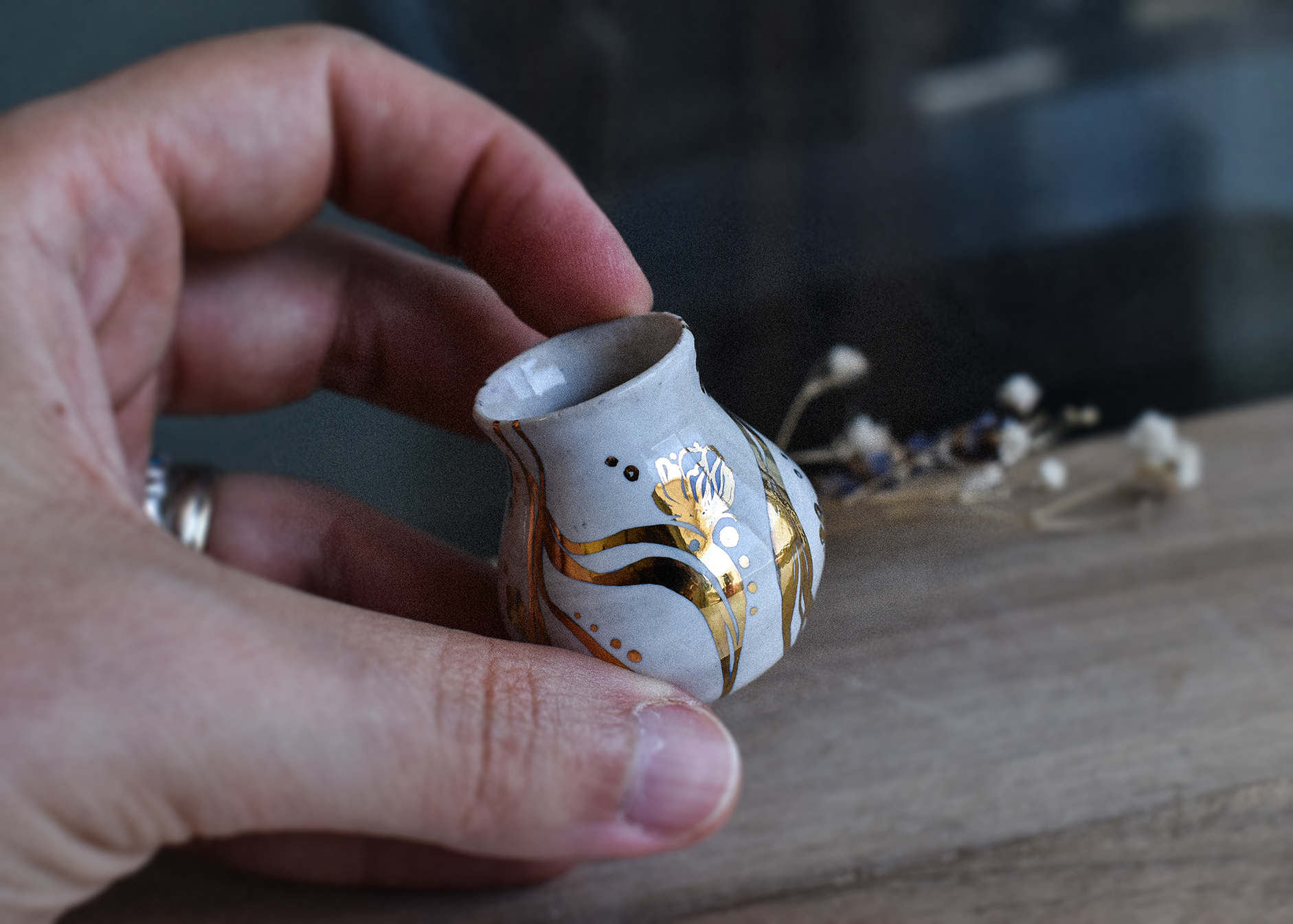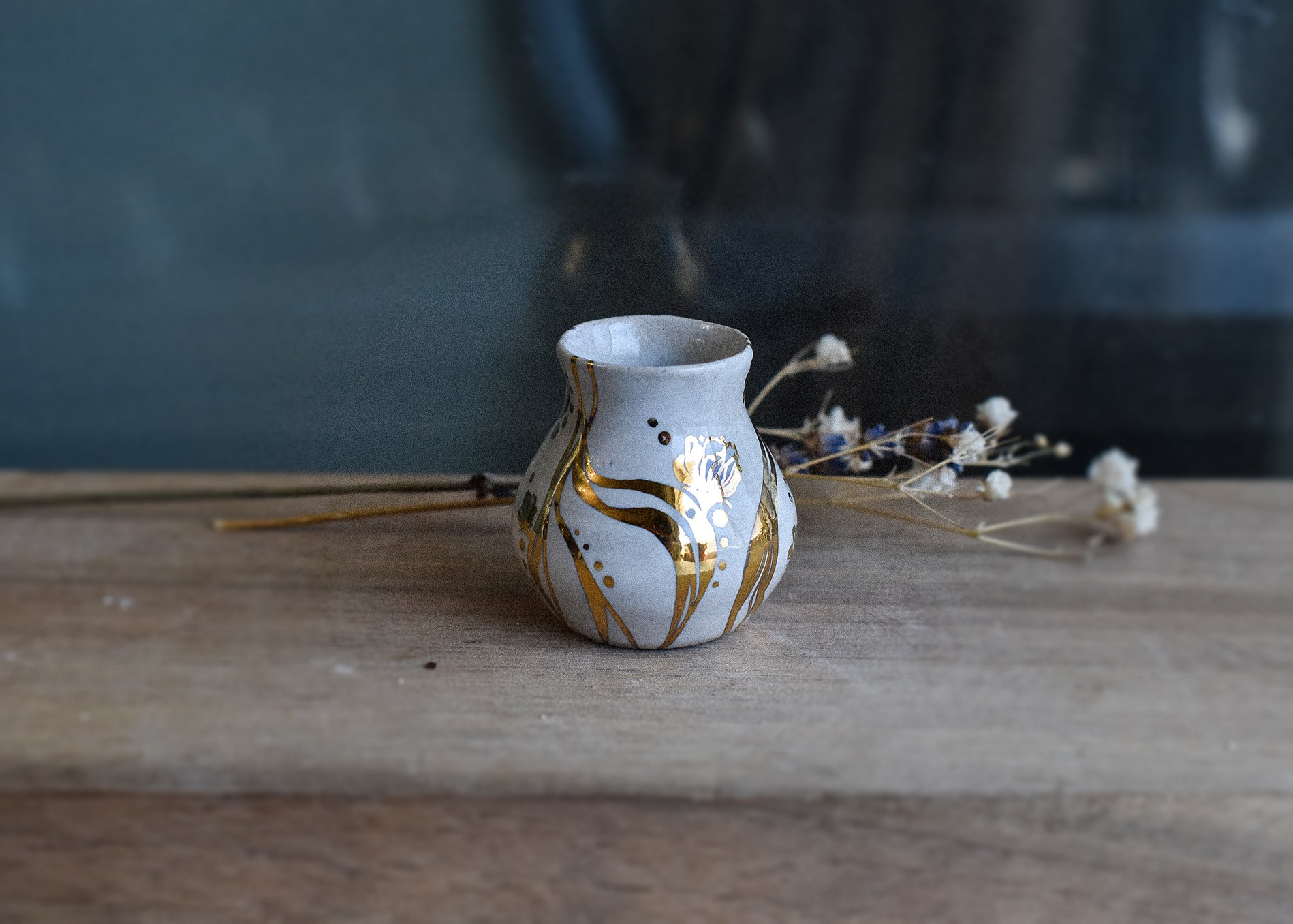 Vază miniaturală din ceramică de temperatură înaltă, lucrată integral manual în atelierul nostru.