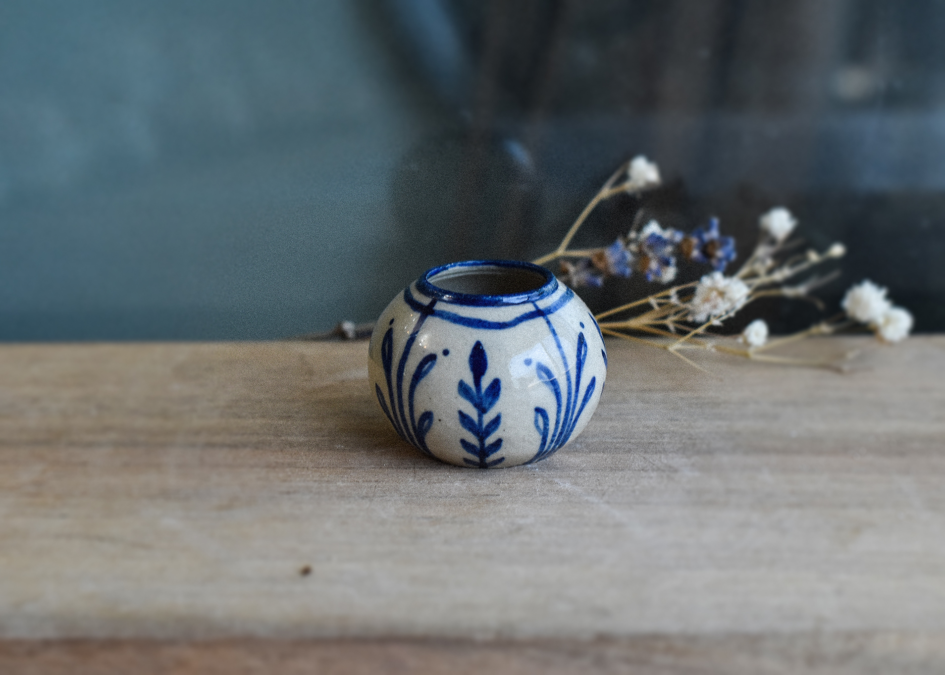 Vază miniaturală din ceramică de temperatură înaltă, lucrată integral manual în atelierul nostru.