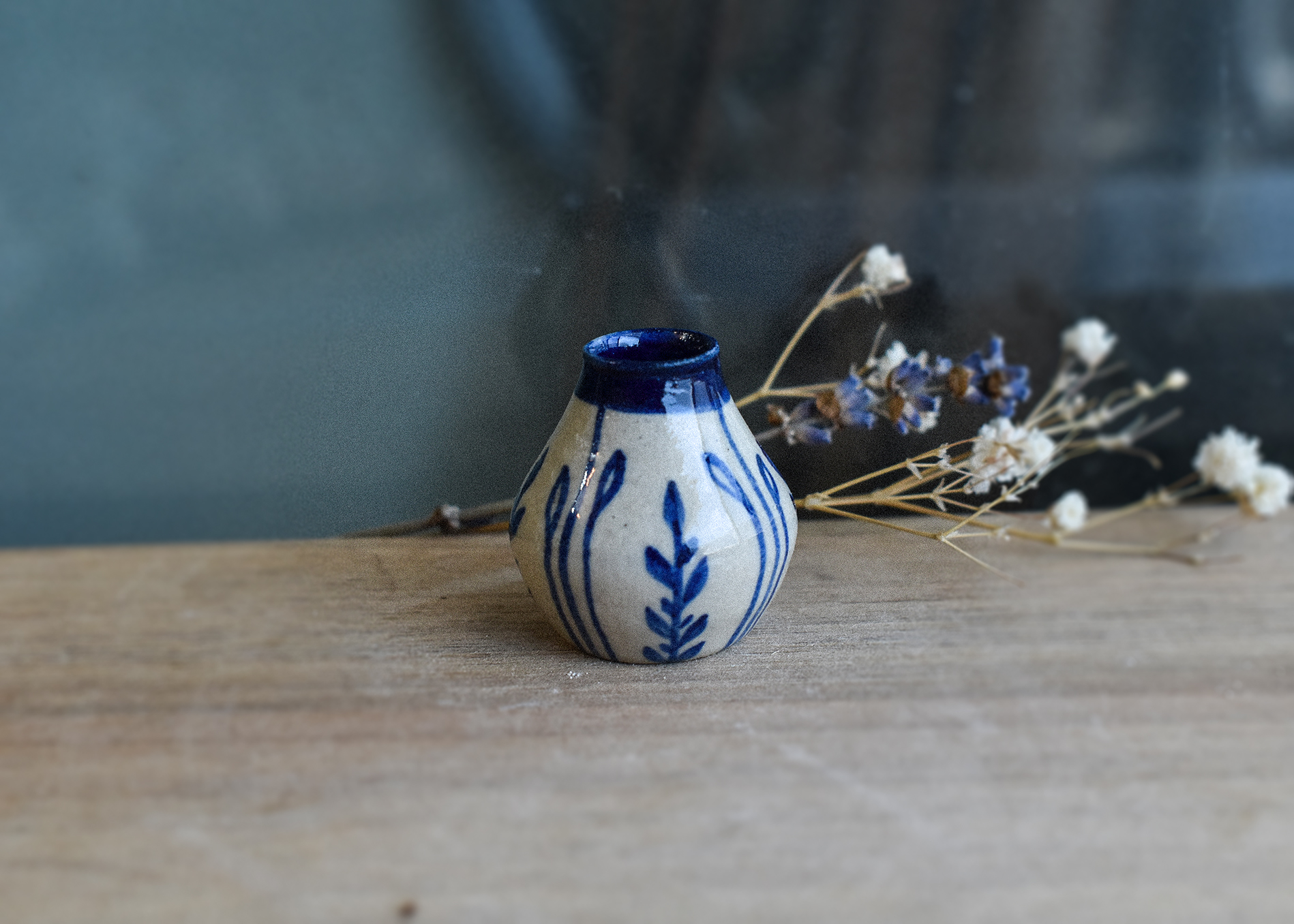 Vază miniaturală din ceramică de temperatură înaltă, lucrată integral manual în atelierul nostru.