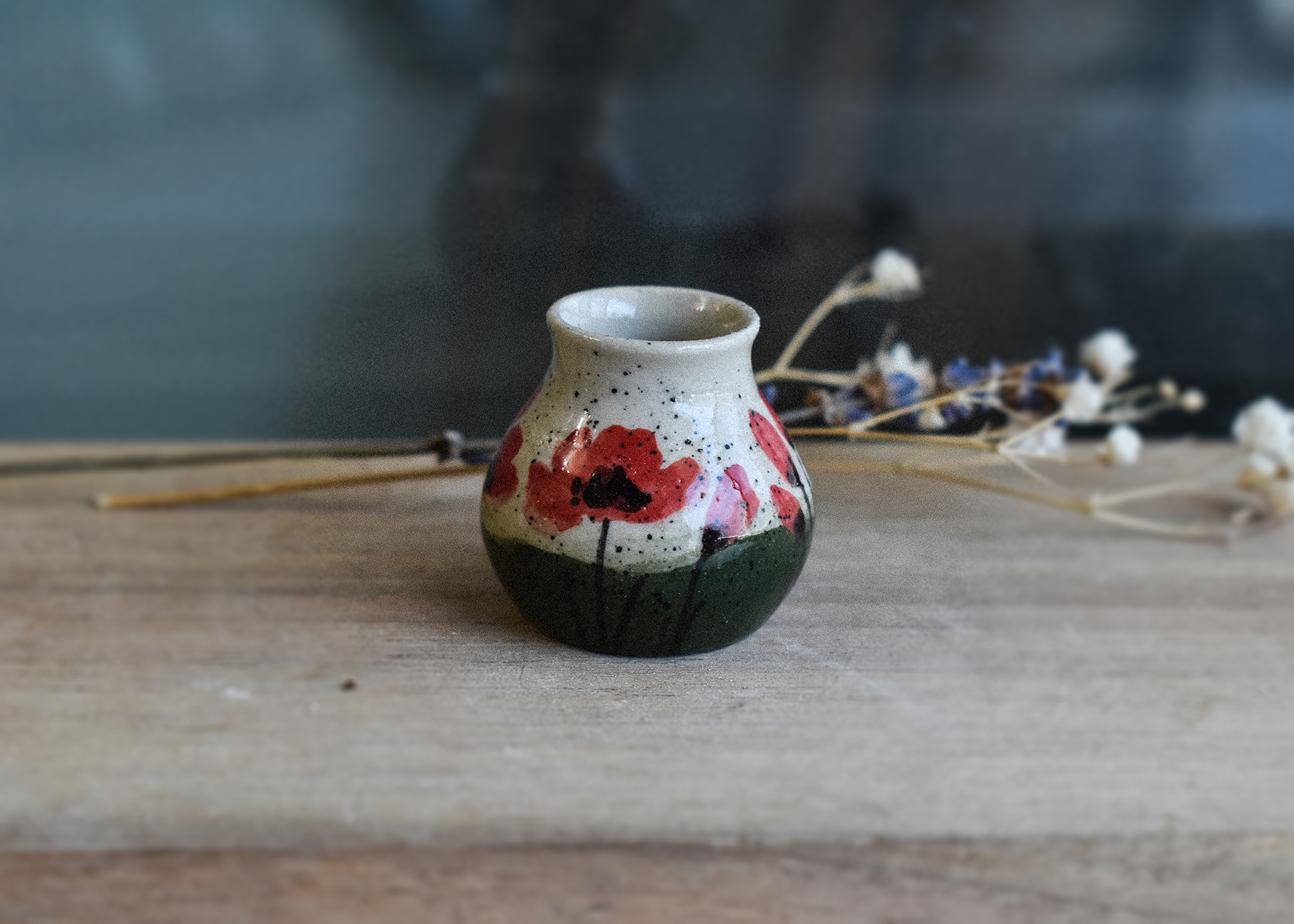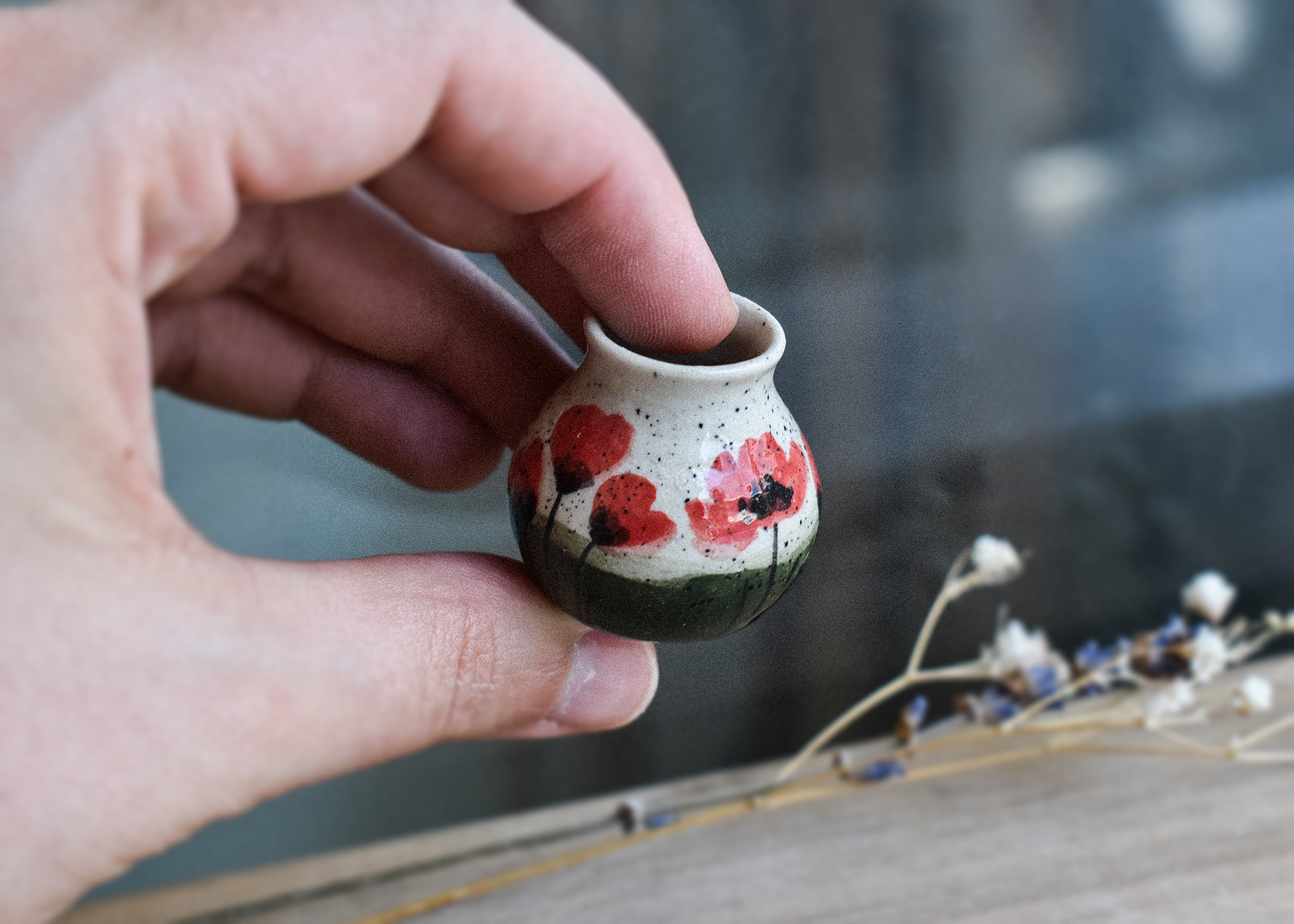 Vază miniaturală din ceramică de temperatură înaltă, lucrată integral manual în atelierul nostru.