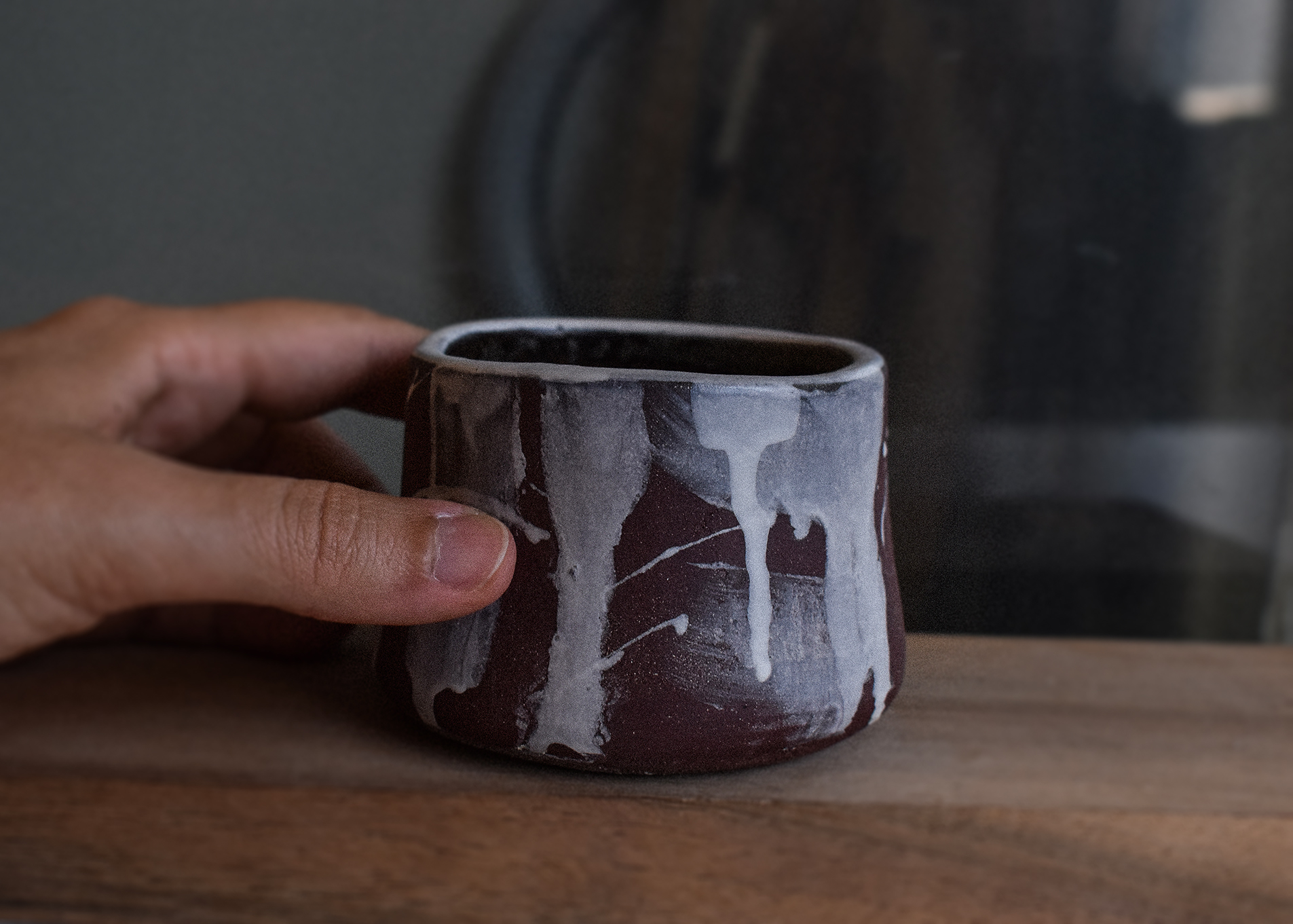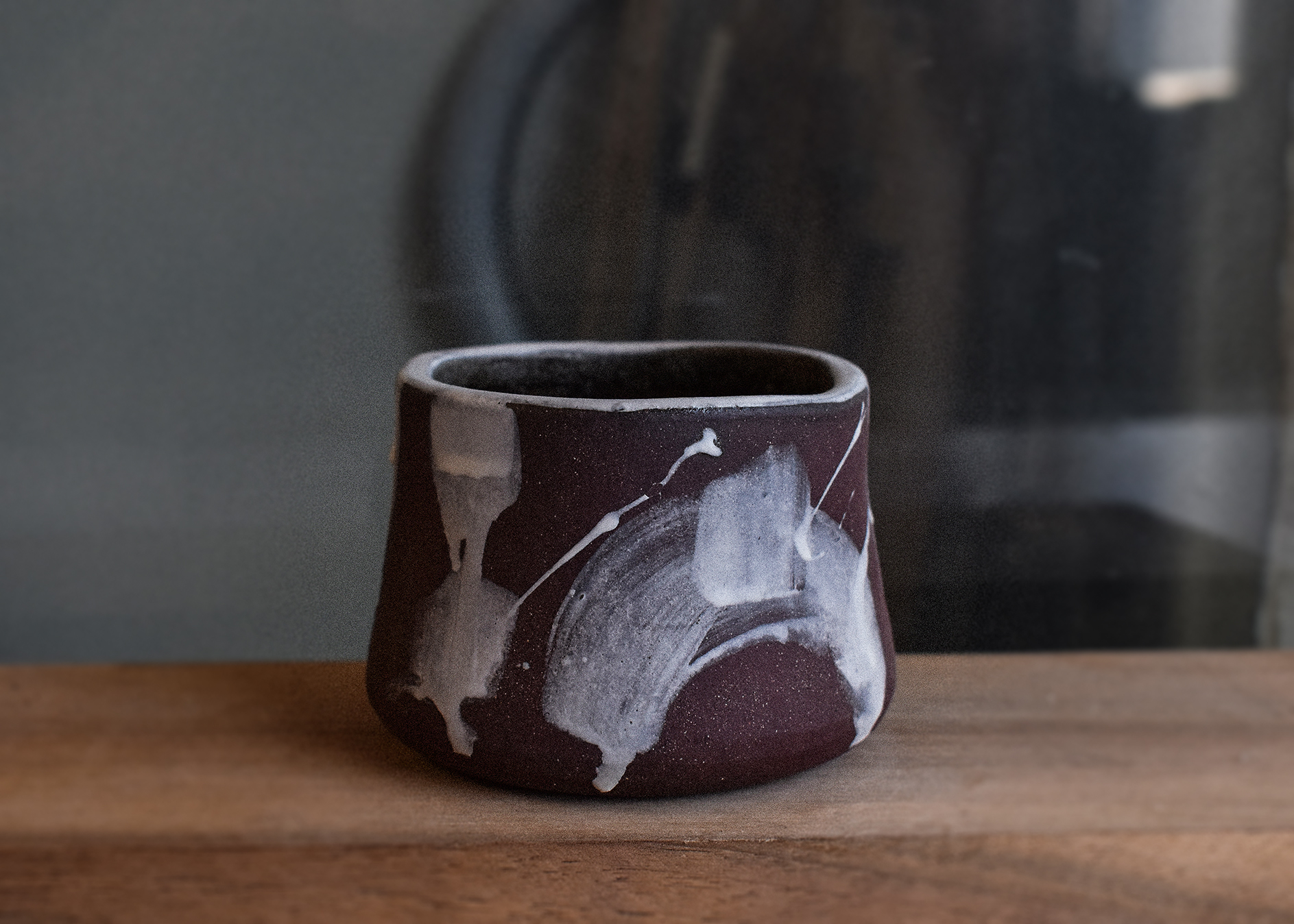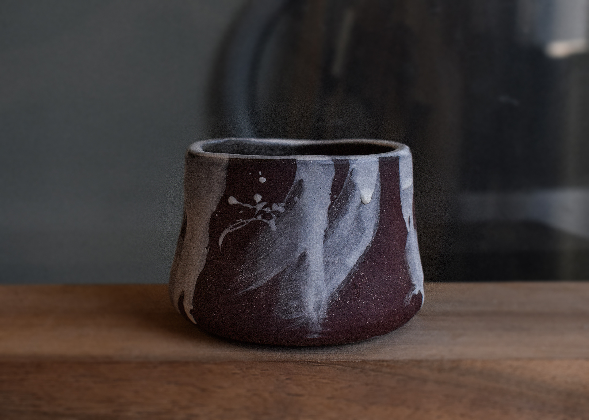 Pahar din ceramică de temperatură înaltă, lucrat integral manual în atelierul nostru. Poate fi folosit și ca vas decorativ sau vază mică.