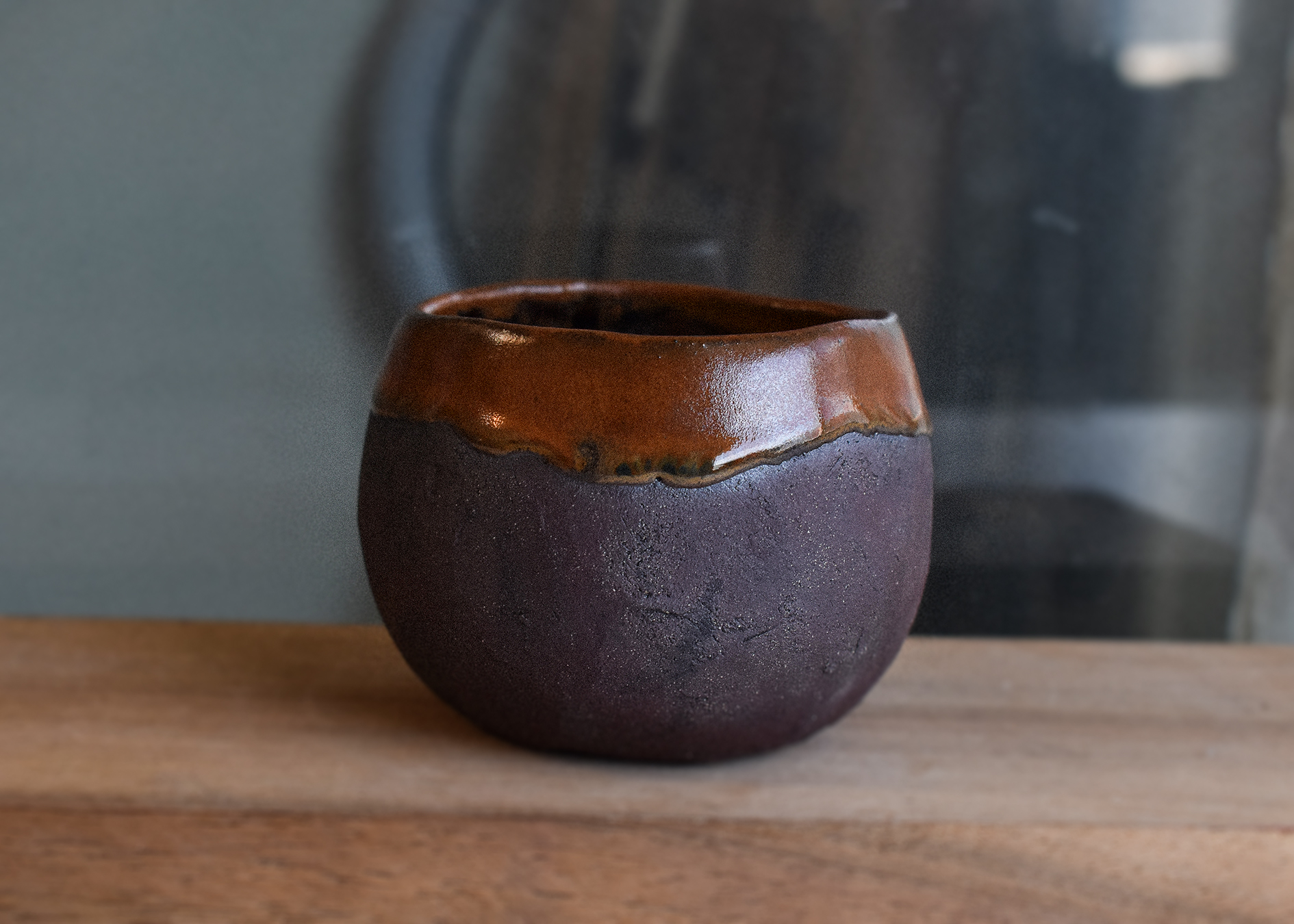 Vas mic din ceramică de temperatură înaltă, lucrat integral manual în atelierul nostru. Poate fi folosit ca bol pentru servire, ca vas decorativ sau vază mică.