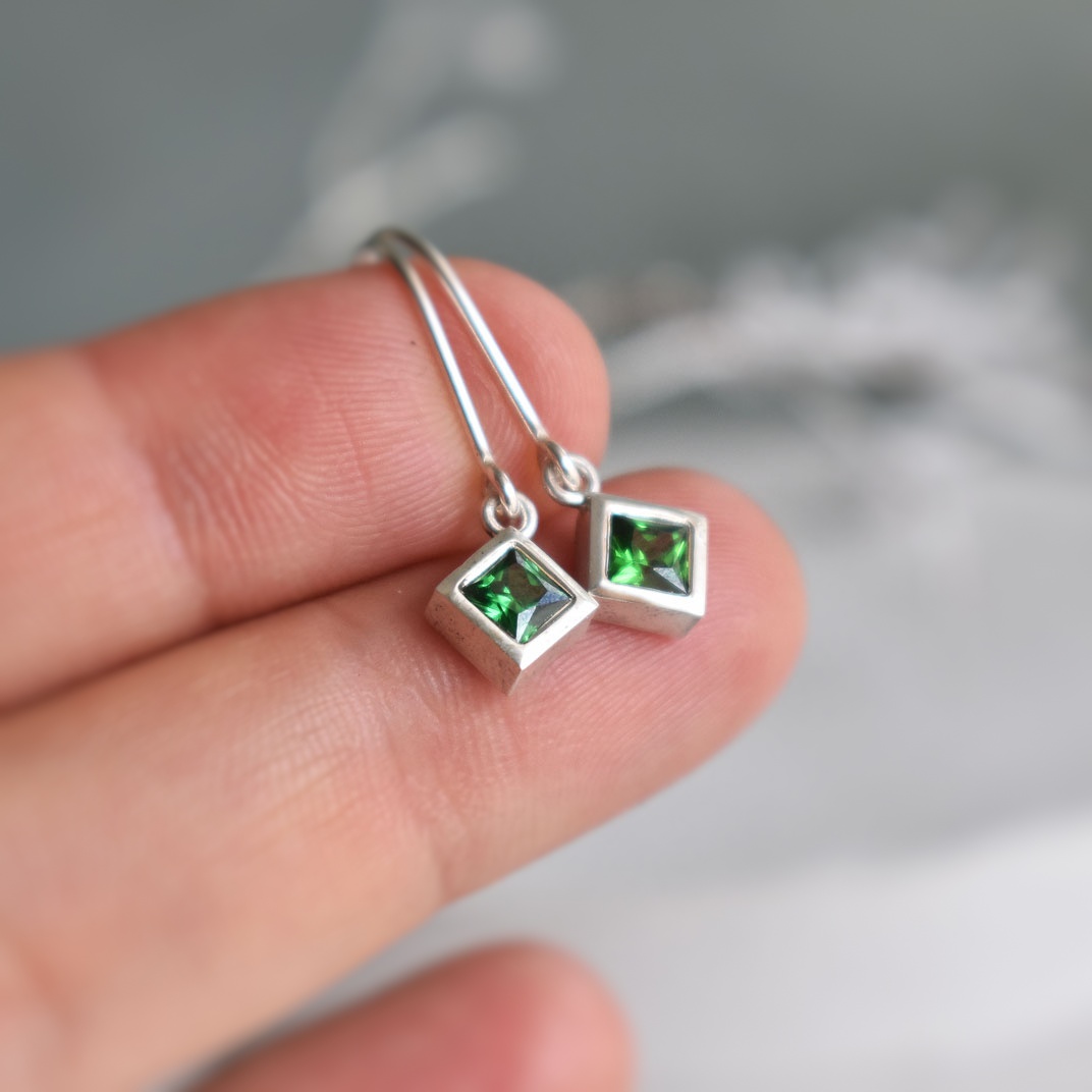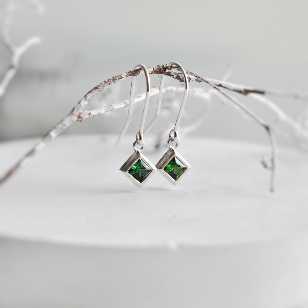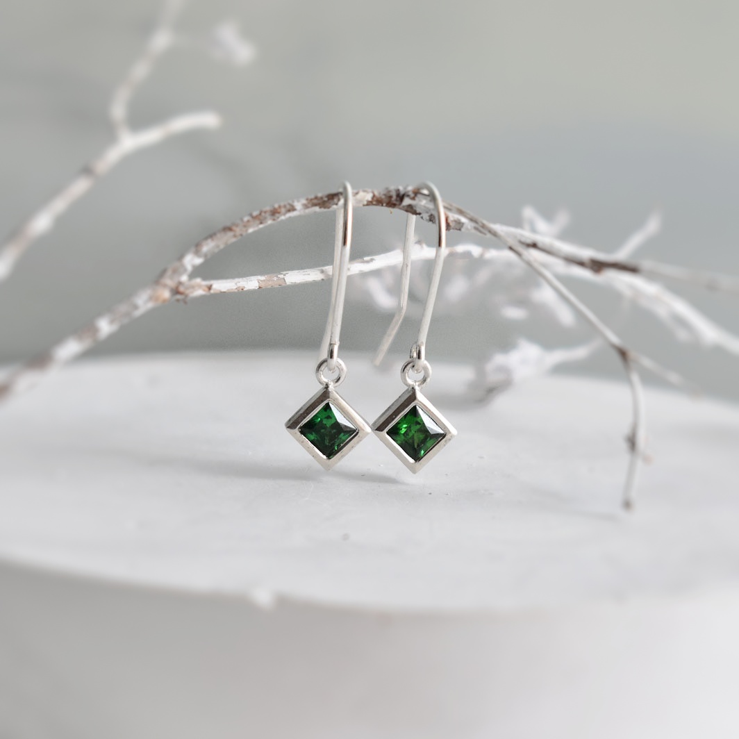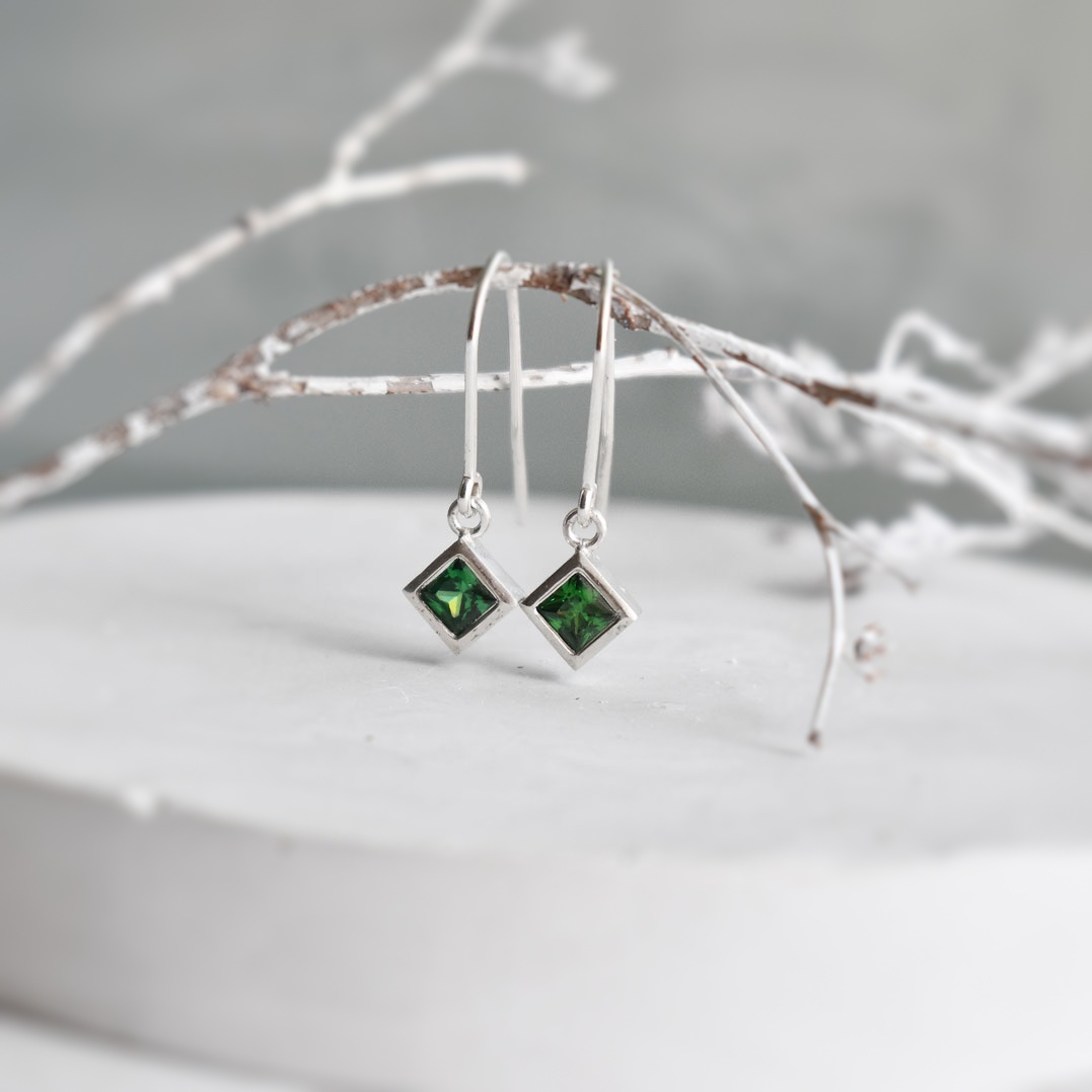 Cercei din argint 925 si zirconii cubice verzi de 4 mm.