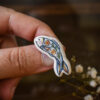 Broșă lucrată integral manual în atelierul nostru. Design-ul are la bază ilustrația noastră originală, transferată pe piesa ceramică la temperatura de 850 grade.