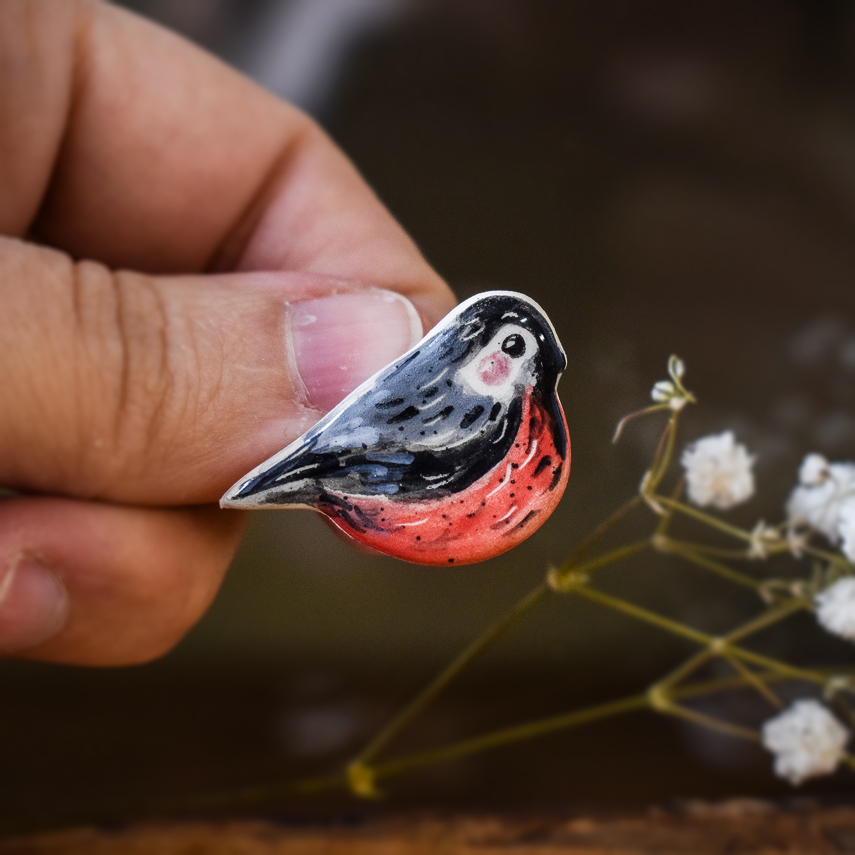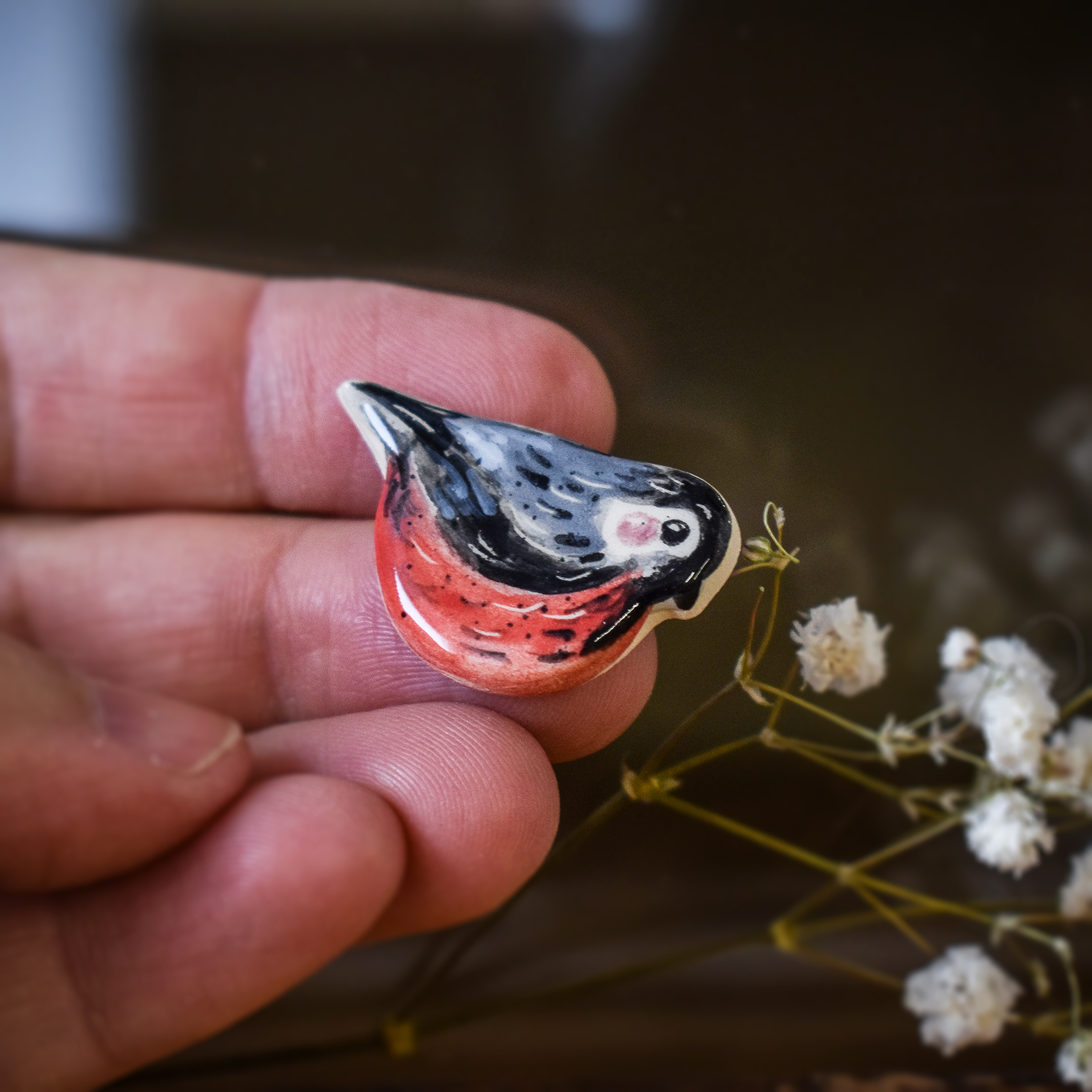Cum se face: Piesa este întâi modelată manual din lut alb, lăsată să se usuce la aer timp de o zi, apoi șlefuită și arsă pentru prima dată în cuptorul de ceramică la 900 grade. Această primă ardere se numește ardere de biscuit, durează între 16 și 20 de ore și este arderea ce transformă lutul în ceramică. După această primă ardere piesa este pictată, glazurată și trecută printr-o nouă ardere la 1050 grade, care durează încă 20-24 de ore. În acest stadiu, dacă modelul are astfel de detalii, piesa este pictată cu aur și trecută printr-o a treia ardere la 850 grade, care durează 12-14 ore. La finalul acestei arderi piesa este pregătită pentru a îi fi atașate elementele metalice în funcție de destinație: ac de broșă, tortițe pentru cercei etc.
